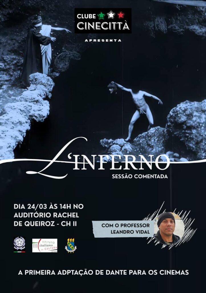 Em colaboração com o Istituto Italiano di Cultura di São Paulo, por ocasião do DANTEDÌ, dia de Dante Alighieri (25/03), exibiremos nesta terça-feira (24/03) a primeira adaptação cinematográfica da Divina Comédia. Com comentários do prof. Leandro Vidal (IFCE). Imperdível!